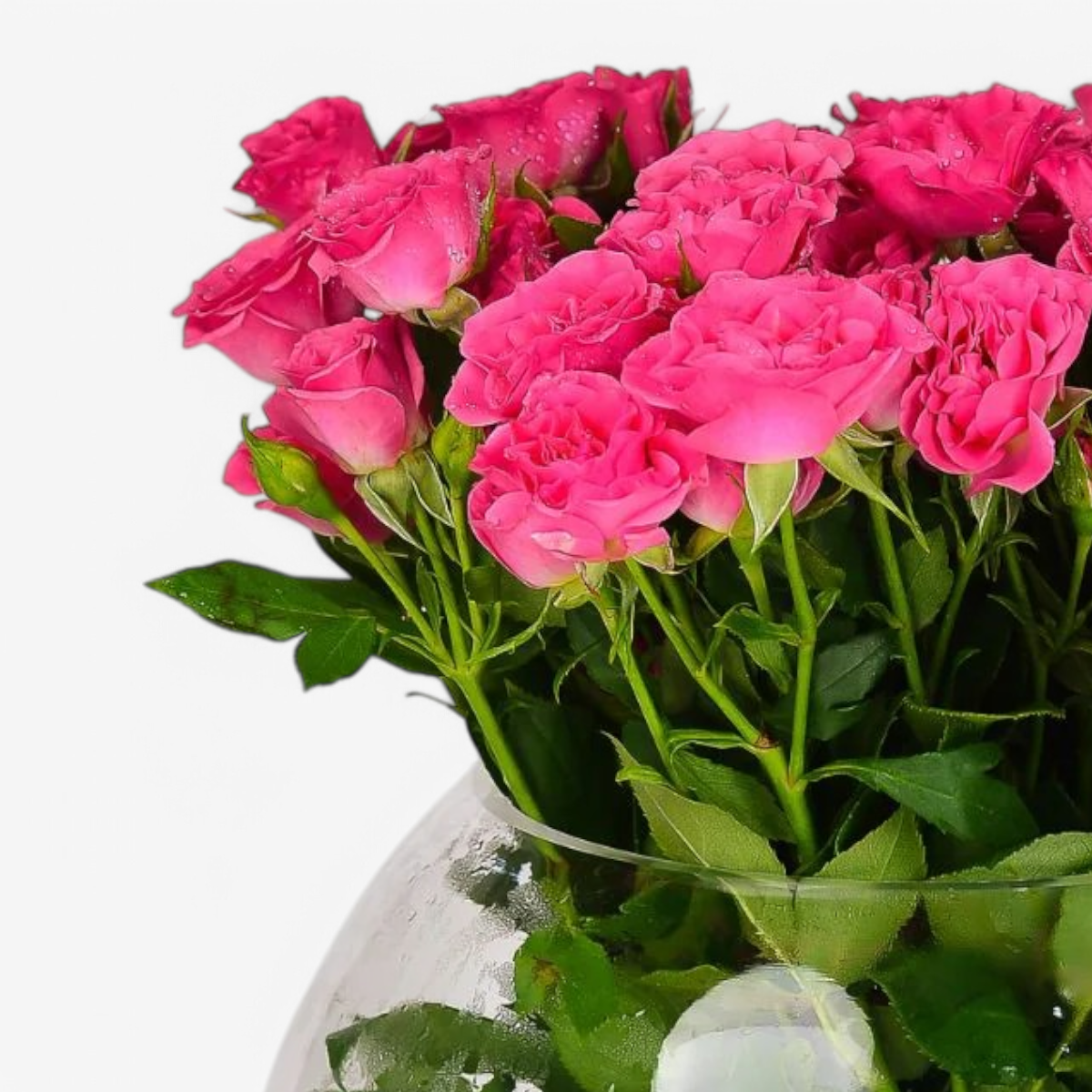 Blooming Charm – Dark Pink Baby Roses in Globe Vase – Flowers