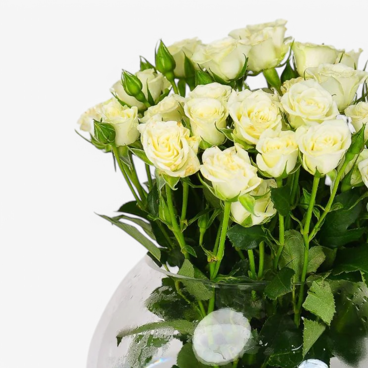 Blooming Charm – White Baby Roses in Globe Vase – Flowers