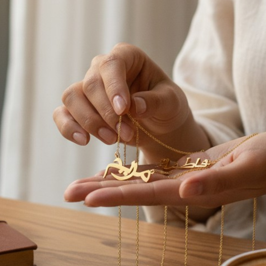 Custom Arabic Name Necklace Handmade in Kuwait – Personalized Jewelry