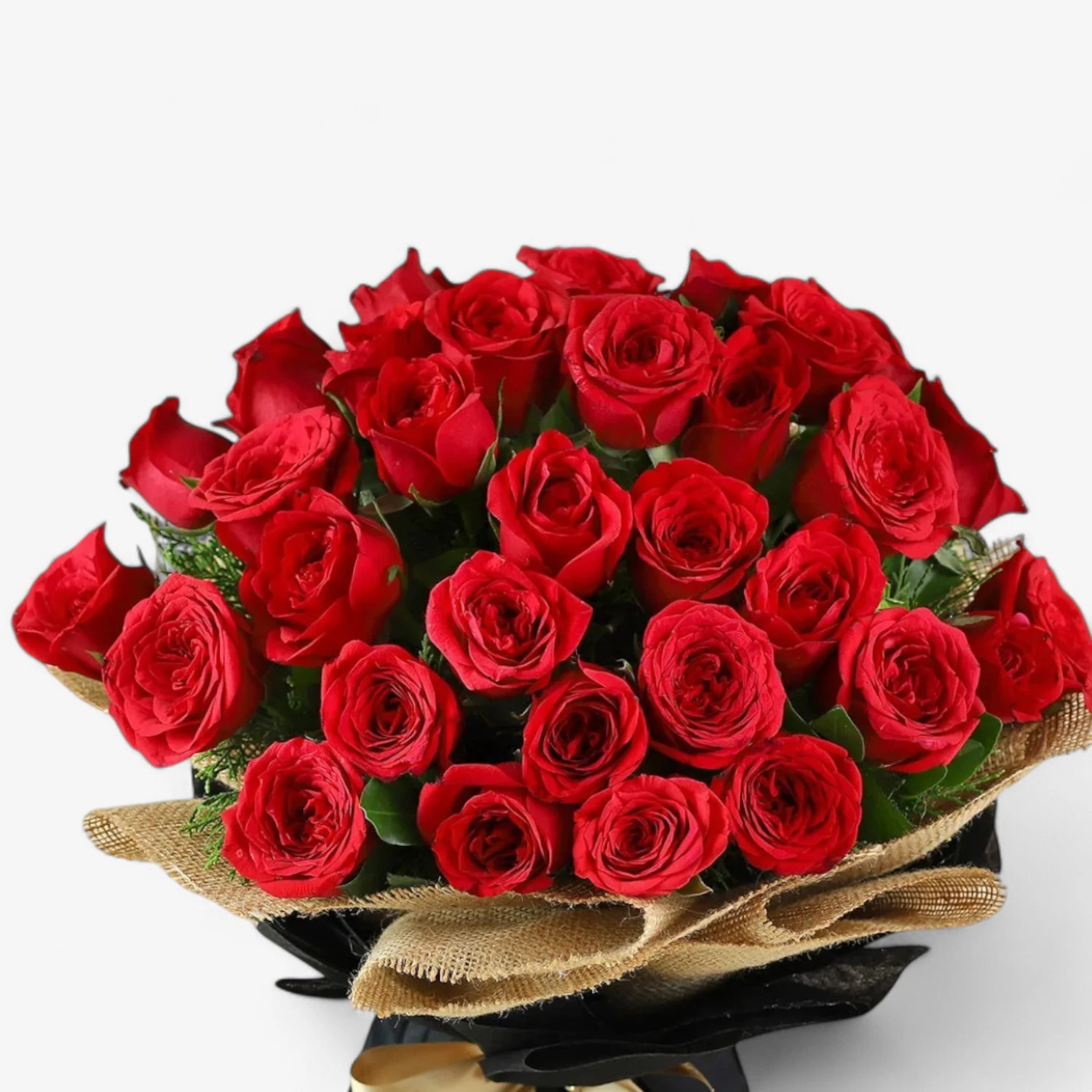 The Endless Love Red Rose Bouquet is a timeless symbol of deep love and affection. Featuring an arrangement of radiant red roses elegantly wrapped in black paper and tied with a bold red ribbon, this bouquet embodies sophistication and passion. Whether it’s for a romantic occasion or to simply express your heartfelt emotions, this stunning bouquet is sure to make a lasting impression.