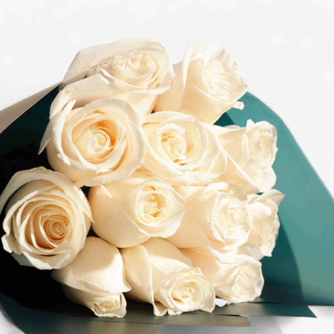 Delicate and elegant, the Blushing Charm bouquet is a perfect way to express affection and admiration. This beautifully wrapped bouquet of fresh White roses captures a gentle and romantic vibe, making it an ideal gift for birthdays, anniversaries, or simply to brighten someone’s day. Each rose is carefully selected to ensure its vibrant color and freshness, wrapped in classic craft paper for a touch of charm.