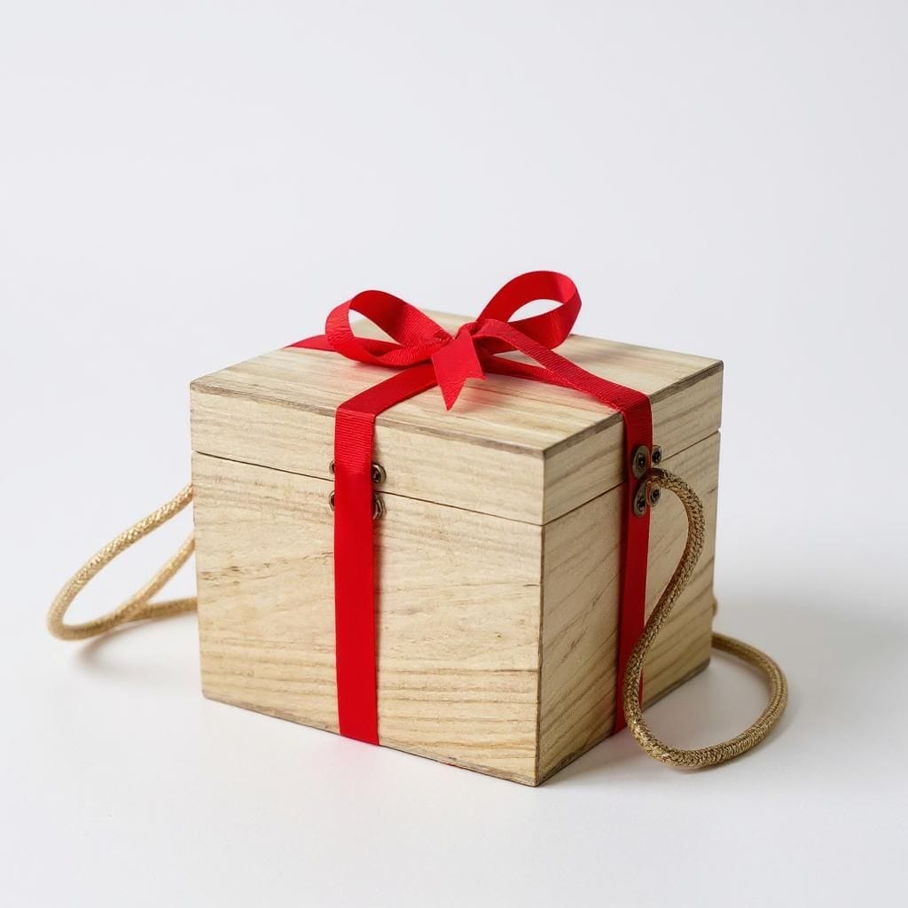 🎁 Premium wooden gift box with gold rope handles