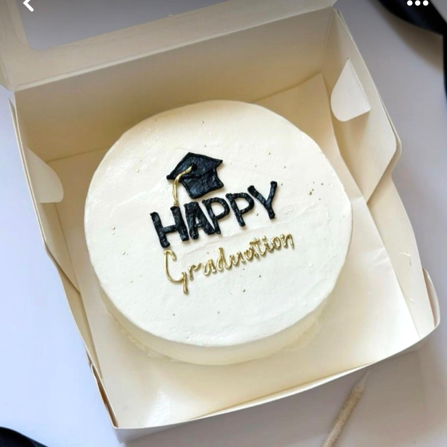 This stunning arrangement features fresh white roses paired with delicate cream spray roses and lush greenery, beautifully styled in a premium clear base with natural moss detailing. A stylish graduation cap topper crowns the arrangement, symbolizing hard work, dedication, and new beginnings.