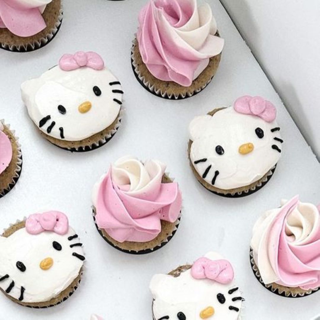 Make your little one’s day extra special with our Hello Kitty Dream Cupcake Set! 💖 Each box features a delightful mix of handcrafted cupcakes — some topped with charming Hello Kitty faces, and others with swirled pink-and-white rose buttercream frosting. Soft, moist, and full of joy, these cupcakes are perfect for birthdays, baby showers, or simply a surprise treat.