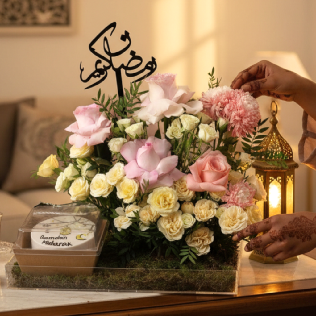 Ramadan Majlis Bloom – Floral & Cake Celebration Set