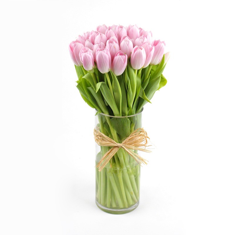Tulip Whisper – 30pcs Pink Tulips in a Glass Vase – Flower Bouquet