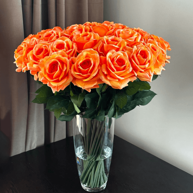 Vibrant Orange Rose Bouquet – Fresh Roses in Elegant Glass Vase