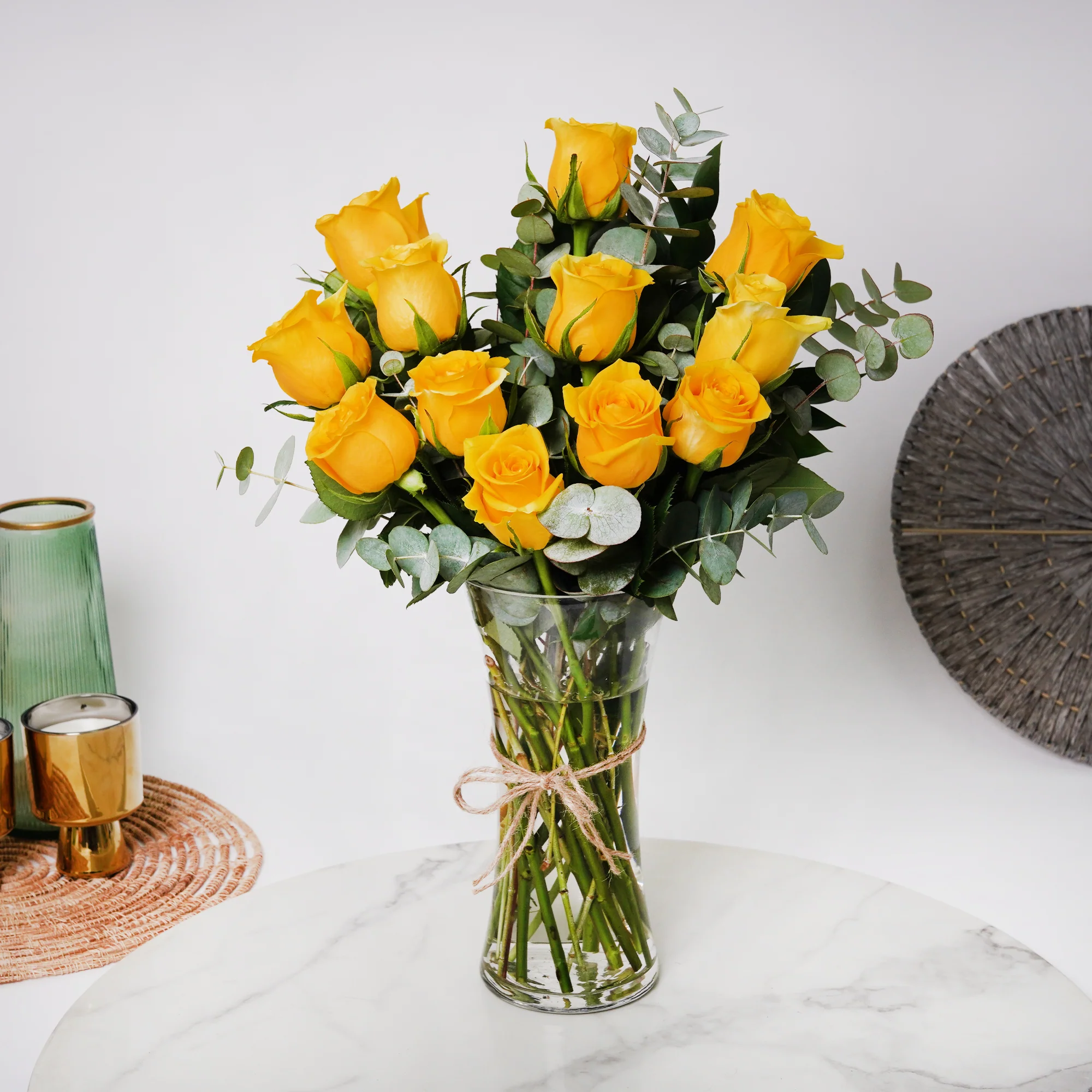 Be the first to review “Yellow Roses Glass Vase Arrangement”